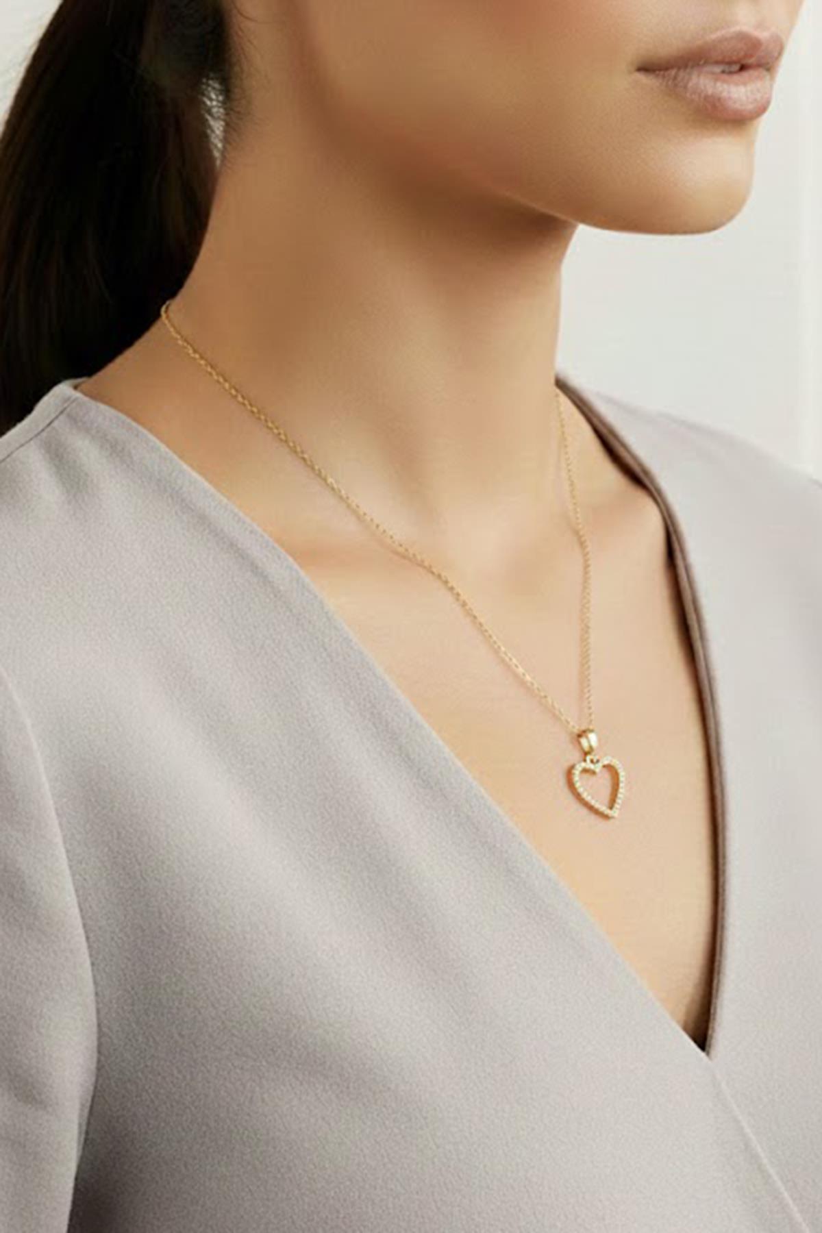 Çelik Kalp Kolye GOLD 45 cm (ÇZKK-102)